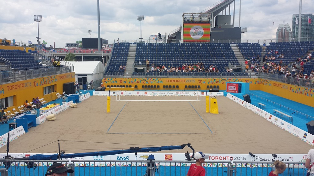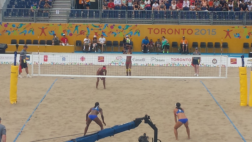 As I said, I play beach volleyball in the summer so I was excited to be able to watch the best beach volleyball players in the world. We took the train in to Exhibition Place where the Chevrolet Beach Volleyball Centre is located, right behind BMO Field. Obviously this is an outdoor venue, so we were a little worried that we’d all end up with heatstroke or sunburn, or we’d have to leave the game early because we were just too hot. Fortunately, we got lucky with the weather; it was mid-high 20’s and partly cloudy all day, so we didn’t bake in the sun. This was especially lucky since the previous two days were hotter and way more humid.