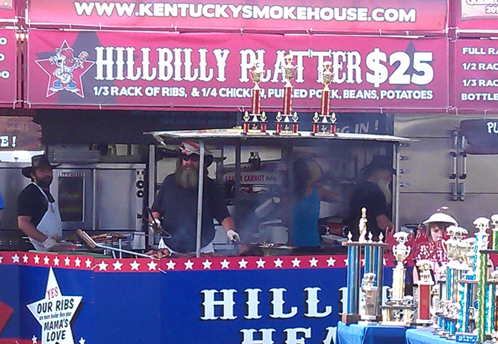 Kentucky Smokehouse – exact opposite of Camp 31. Ribs were great, sauce was just OK. This is funny because last year we liked the Kentucky Smokehouse sauce so much, we bought a bottle to take home. Two of the guys working this rig looked like your stereotypical Kentucky hillbillies (picture below) and I heard on the radio that they are actually good friends with the Duck Dynasty guys. Interestingly, they seem to have lost the http://www.kentuckysmokehouse.com domain.