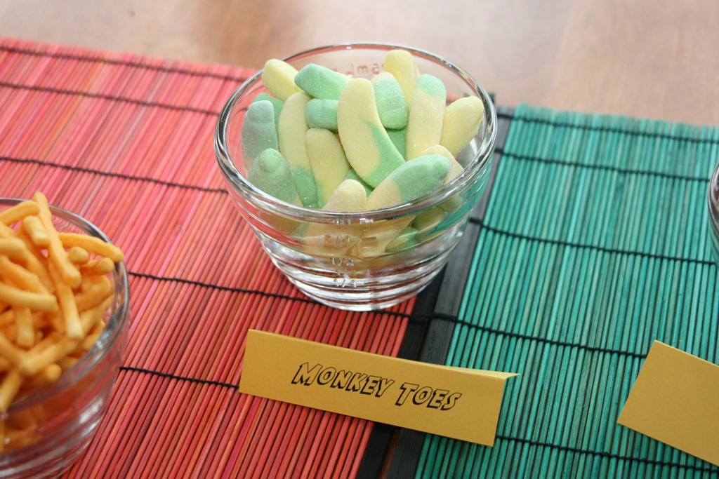 Our final movie of the event was Green Lantern, and we went all green on this one. Green plates, cups, napkins, and cutlery, as well as green apples, grapes, and melon, and gummy frogs and sour green gummy… things.