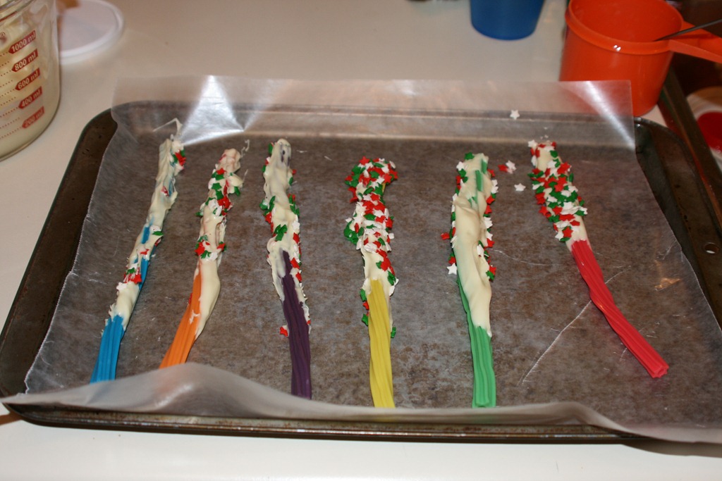 and the boys helped make magic wands – Twizzlers dipped in white chocolate and covered in star-shaped sprinkles:
