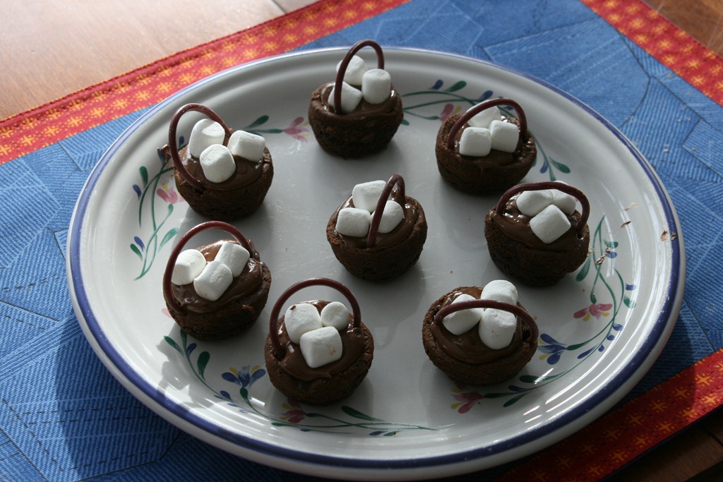 On a bit of a whim, Gail decided to make Harry Potter-themed treats for the occasion. She made some kind of fruit punch and called it “pumpkin juice”, and cut up fruits into unusual shapes and called it a “herbology experiment”. She also made “cauldron cakes”, which were two-bite brownies covered in melted chocolate, a few mini-marshmallows, and a licorice handle: