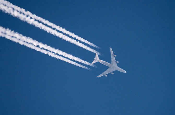 A surprising number of people believe in something they call chemtrails. This is the belief that the cloud-like lines you see forming behind airplanes are not contrails or vapor trails (i.e. trails of water crystals that form due to water in the engine exhaust and very cold air) but chemicals intentionally released by the airliners. These people believe that the “government” (whether it’s the US government or all governments or that of the “New World Order”) forces airlines to secretly install distribution devices on all aircraft and then spread mind-controlling chemicals over the general public.